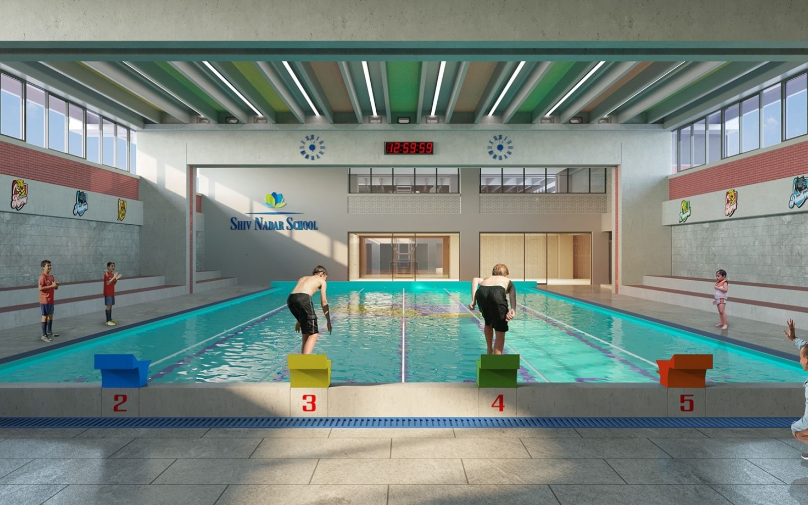 リゾート案件の装飾性とは異なり、学校プールのパースは、学校建築パースにおける機能性重視の設計アプローチを反映し、オリンピック規格や教育基準に沿った安全性、換気性、機能性を重視します。レーンマーク、飛び込み台エリア、プール周囲の滑り止め床材、そしてあらゆる天候条件で生徒の健康を確保するための最新の屋根システムなどが、図面上で明確に表現されます。