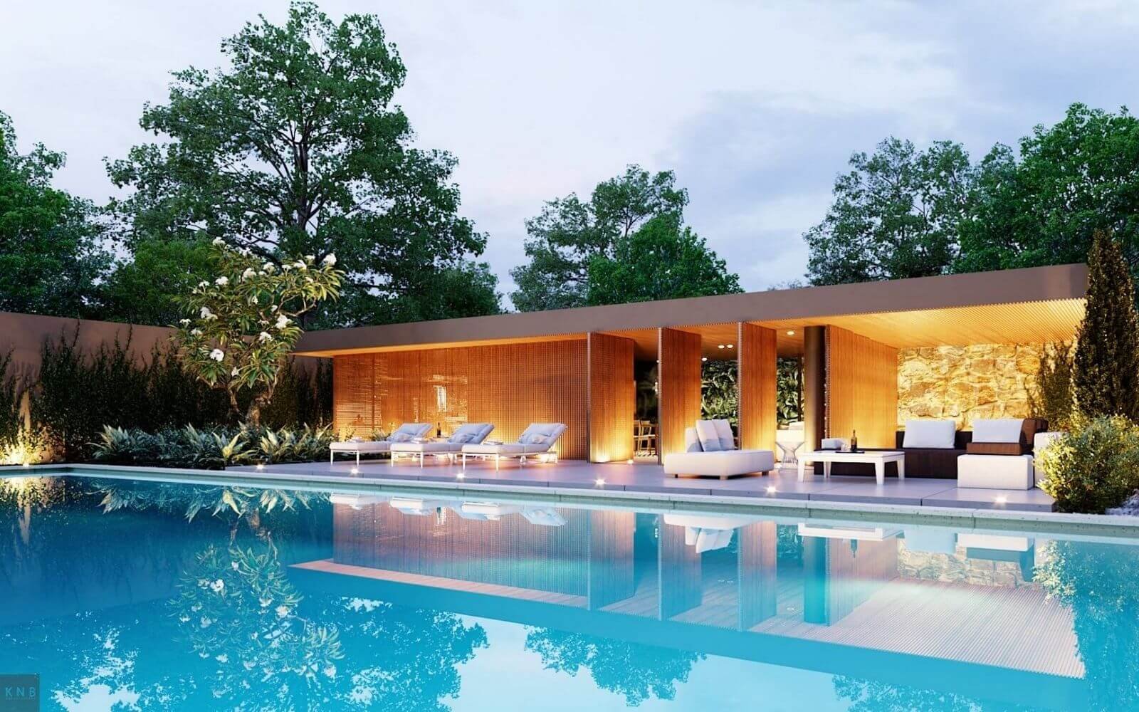 プライベートヴィラ空間では、プールパースはヴィラ建築パース全体のデザインコンセプトと連動し、住宅全体の建築デザインを引き立てるようにパーソナライズされます。建築家は、モザイクストーンや高品質な屋外用木材などの自然素材を用いながら、リビングルームや庭と水面とのつながりを強調し、施主のライフスタイルを明確に反映した、ラグジュアリーでありながら居心地の良いリラクゼーション空間を演出します。